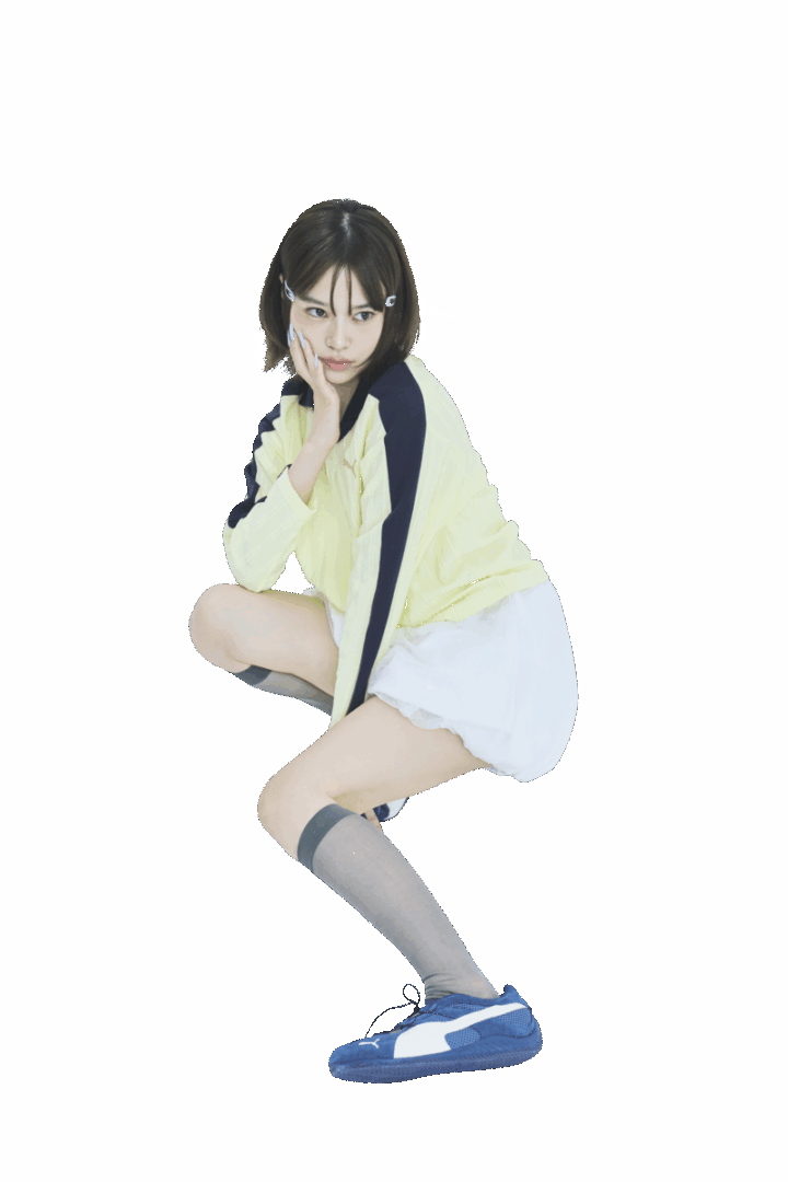 トップス¥7,700、スニーカー¥13,200/ともにプーマ(プーマお客様サービス)、ミニスカート¥12,010/マーガリンフィンガーズ(ハナ コリア)、ソックス/スタイリスト私物