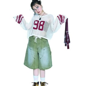ニット¥3,299、ハーフパンツ¥4,399、バッグ¥3,299、メガネ¥990、ハートネックレス¥550、チョーカー¥330、ブーツ¥5,499/以上すべてウィゴー、ソックス/スタイリスト私物