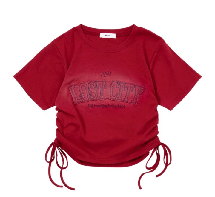 【上から】ユーズドライクな色合いがナイス。Tシャツ¥2,474、ミリタリーなムードでコーデを刷新して。ミニスカート¥3,299、スタイリングのアクセントになるライトブルー。キャップ¥1,649、シャツ合わせでクールに。ネクタイ¥1,099、プラスするだけで今っぽくなるカラーレンズ。ガーリーなピンクがイチオシです。サングラス¥990/以上すべてウィゴー