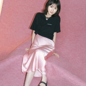 「私服でよく黒いTシャツを着るのですが、今回のようなツヤッとした素材のスカートと合わせると、エレガントさとスポーティさを兼ね備えたコーデになってすごくいいなと思いました。あと、ブレスレットがバレエシューズのモチーフになっていて! レペットのシューズと合わせたのかな、素敵だなと思いました」