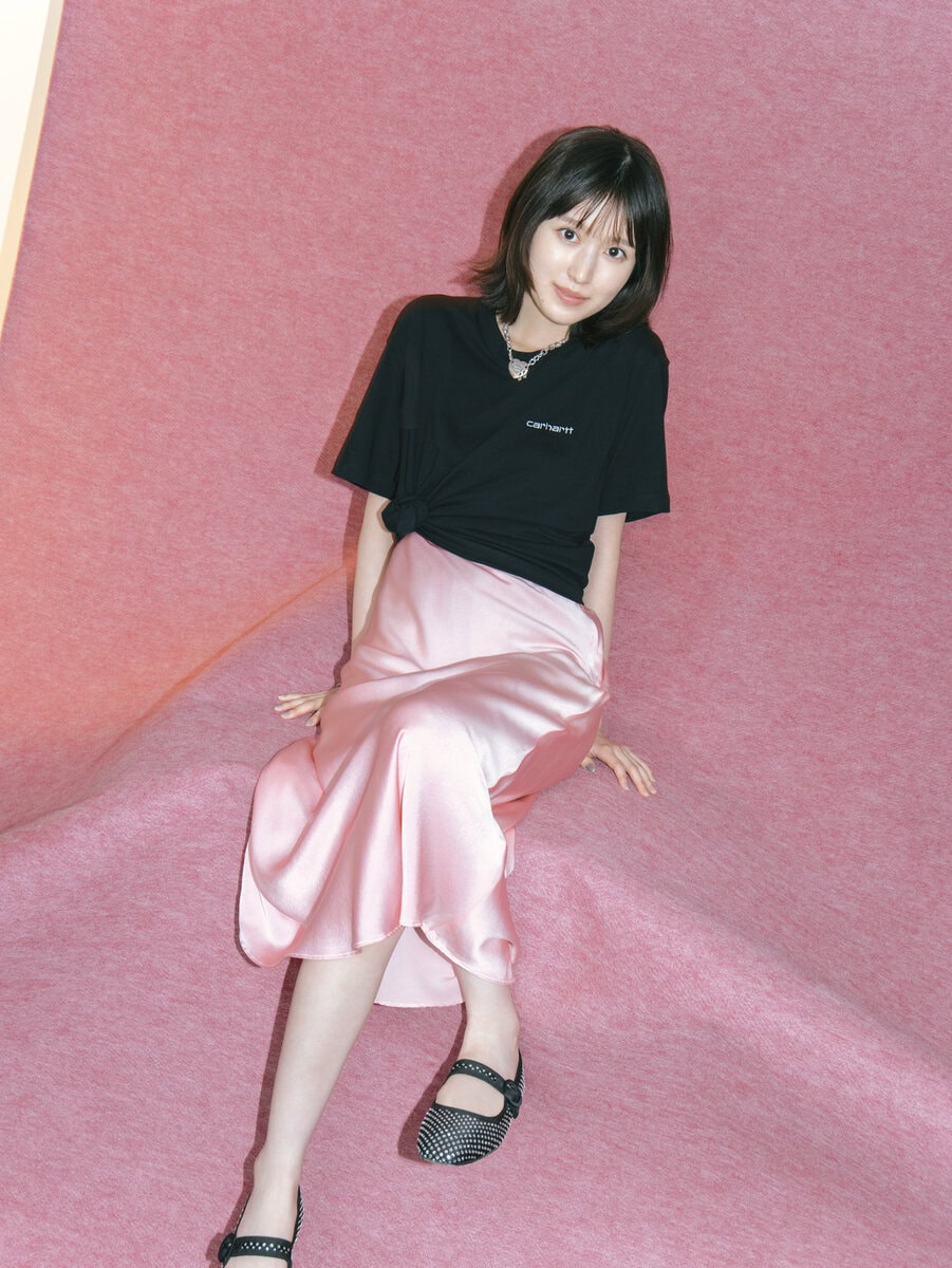 interviewTシャツ¥7,700/カーハート WIP(カーハート WIP ストア ハラジュク)、スカート¥26,880/スーベニア、ネックレス¥22,275/サンディ・リアング(ともにLYDIA)、シューズ¥86, 900/レペット(ルックブティック事業部)