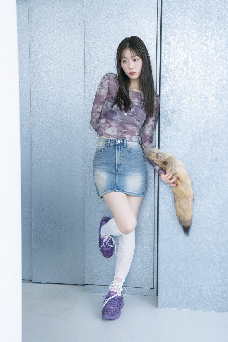 シアートップスセット¥3,289、しっぽ¥2,189、レースレッグカバー¥880/以上すべてスピンズ、スカート¥4,740/SHOPPERLAND、ビーズネックレス¥2,490、ハートリング¥390/ともにナディア フローレス エン エル コラソン、ロザリオ¥9,020/ジョーガッシュ(ハナ コリア)、スニーカー¥13,090/スケッチャーズ(スケッチャーズ ジャパンお客様コールセンター)