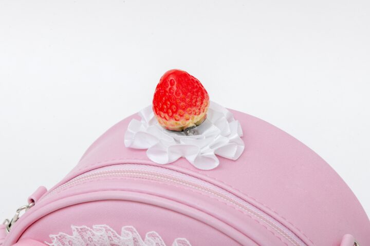 レースで表現したクリームにいちごをON♡ がばっと開いて中が見やすくて、たっぷり入るマチあり仕様です。