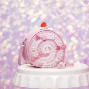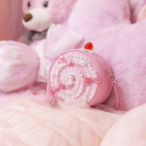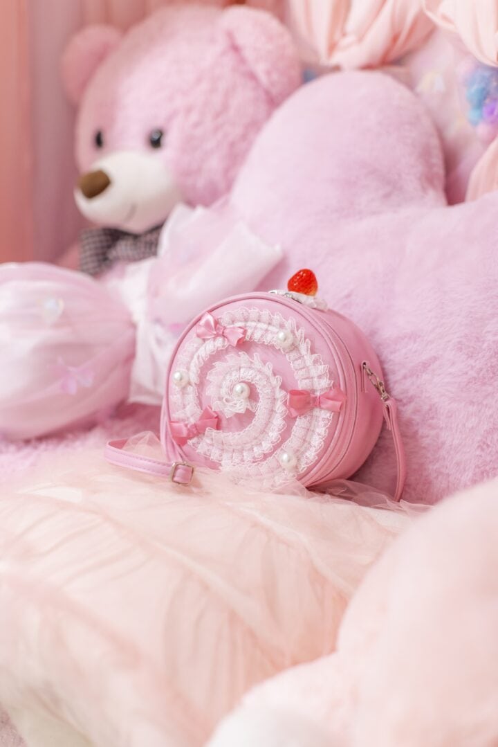 いちご味のスポンジケーキをイメージした、ピンクのロールケーキ型ポーチ。ショルダーストラップをつければ、バッグにもなる2WAY仕様です♡