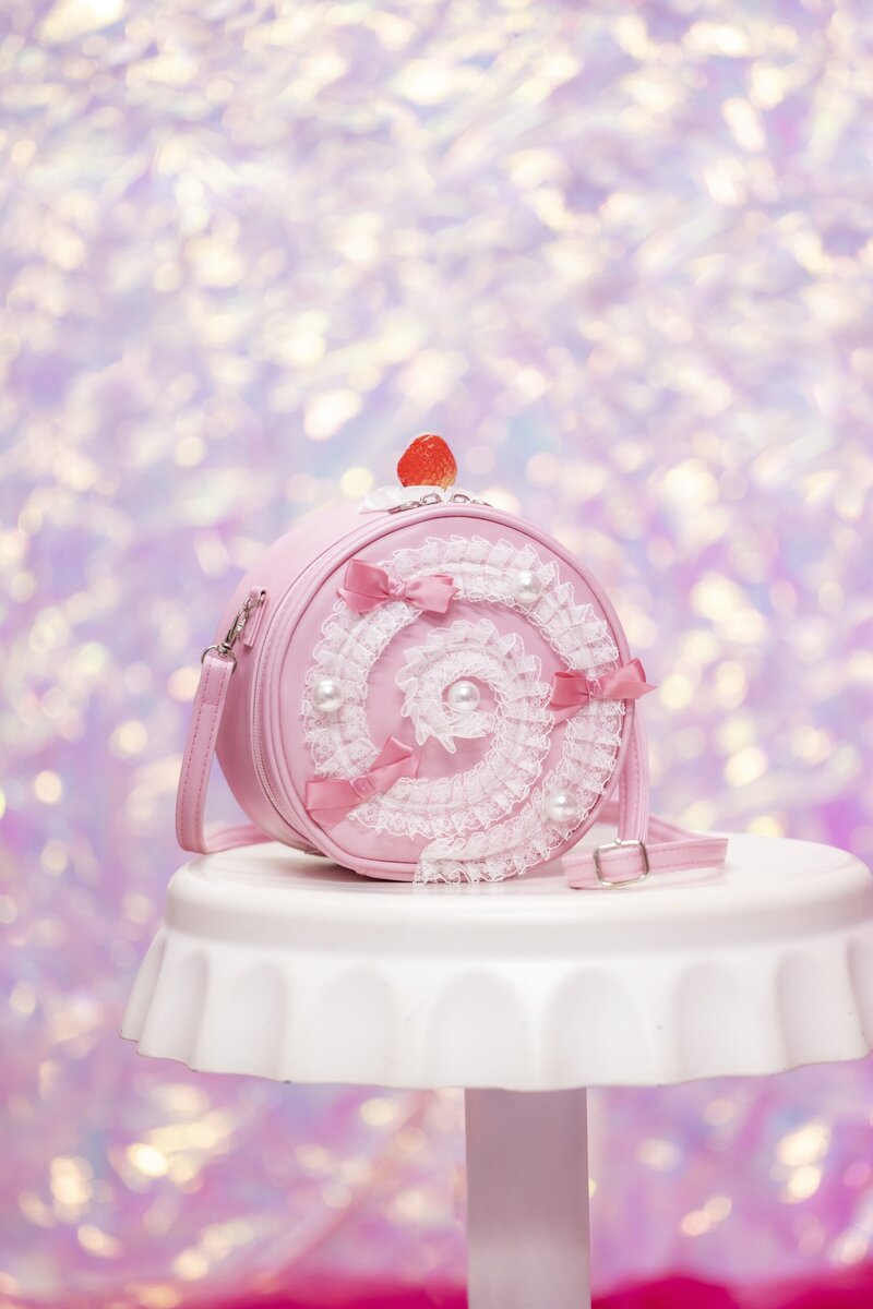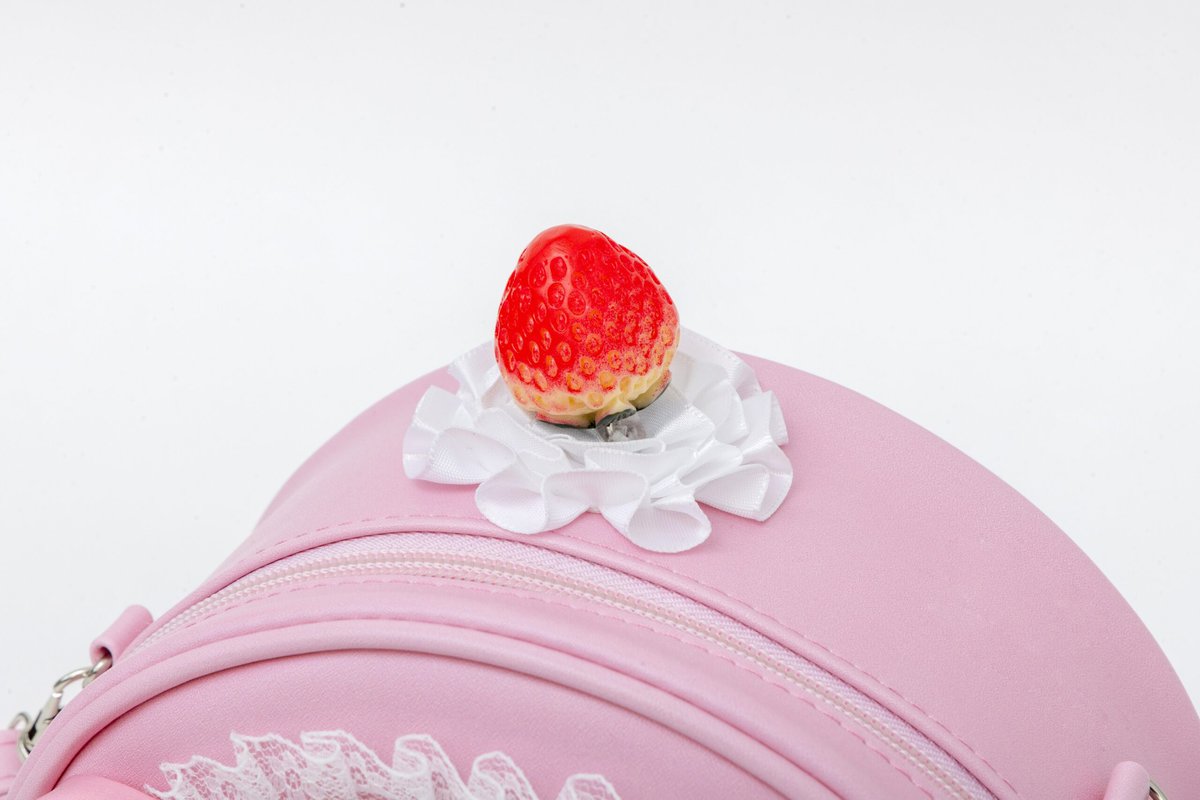 いちご味のスポンジケーキをイメージした、ピンクのロールケーキ型ポーチ。ショルダーストラップをつければ、バッグにもなる2WAY仕様です♡