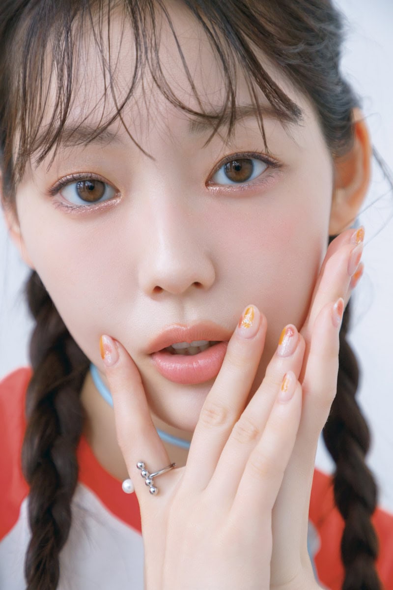抜け感のあるシームレスなオレンジでオーバーリップに仕上げると今どきの顔に! 日焼け風チークを合わせて、明るく軽快な推しに負けない、陽気で可愛いメイクを楽しんで。