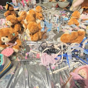 中央に置かれたテープルには、カラフルで可愛いリボンやレース、パーツがたくさん準備され、みんな思い思いのデコを楽しんでいました!