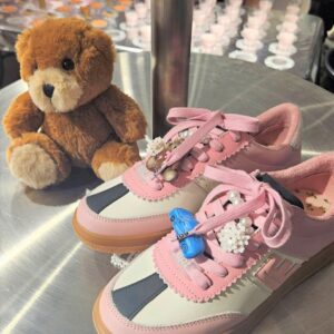 どちらも中敷きは花柄に! 別売りのチャームでデコれるようになっていて、 リトサニの世界観がたっぷり楽しめます。もちろん、履き心地も抜群です◎! 今回オリジナルで作ったというこだわりの詰まったチャームは取り外し可能なので、別のスニーカーにつけて楽しむことも。