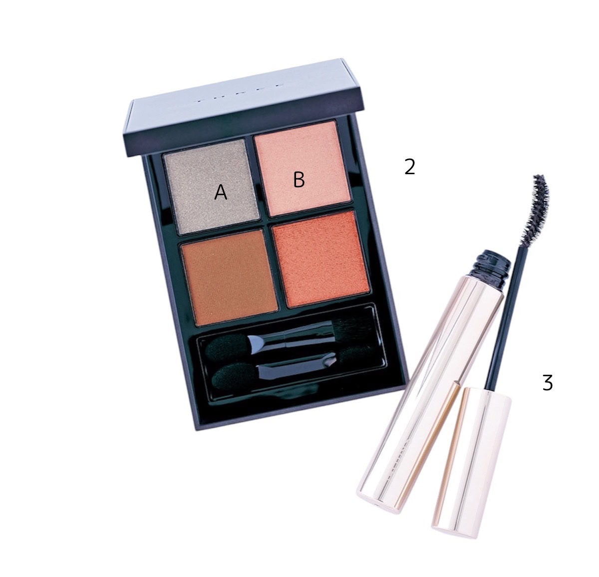 2.エフォートレスな仕上がりを叶えるグレイッシュなレッド&ブラウンパレット。THREE スターゲージングアイシャドウクアッド 06 ¥7,480/THREE 3.抜け感とインパクトを両立したグレージュ。SNIDEL カール ロック マスカラ 02 ¥3,300/スナイデル ビューティ