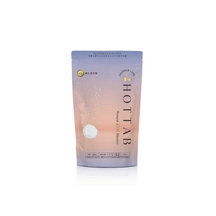 からだを芯から温めて血行を促進する重炭酸入浴剤。専用シャワーヘッドにセットしても、入浴剤と使用してもOK。ホットタブ ナチュラル ゼン 45錠 ¥4,510/ホットタブお客様窓口