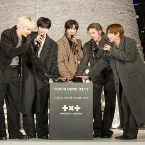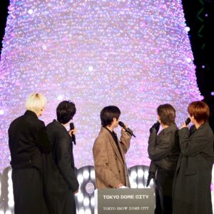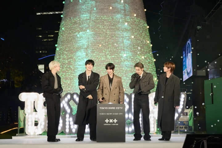 現在4度目となるワールドツアー『TOMORROW X TOGETHER WORLD TOUR <ACT : TOMORROW>』を開催中、2026年1月には2度目の東京ドーム公演が決定したTOMORROW X TOGETHER♡ 東京ドームシティにある高さ約15mの輝くツリー「WONDER SNOW TREE」前にて、イルミネーションの点灯式に登場しました。イルミ×スターの相性は最高すぎる。輝きがまぶしすぎる瞬間をお届けです♡