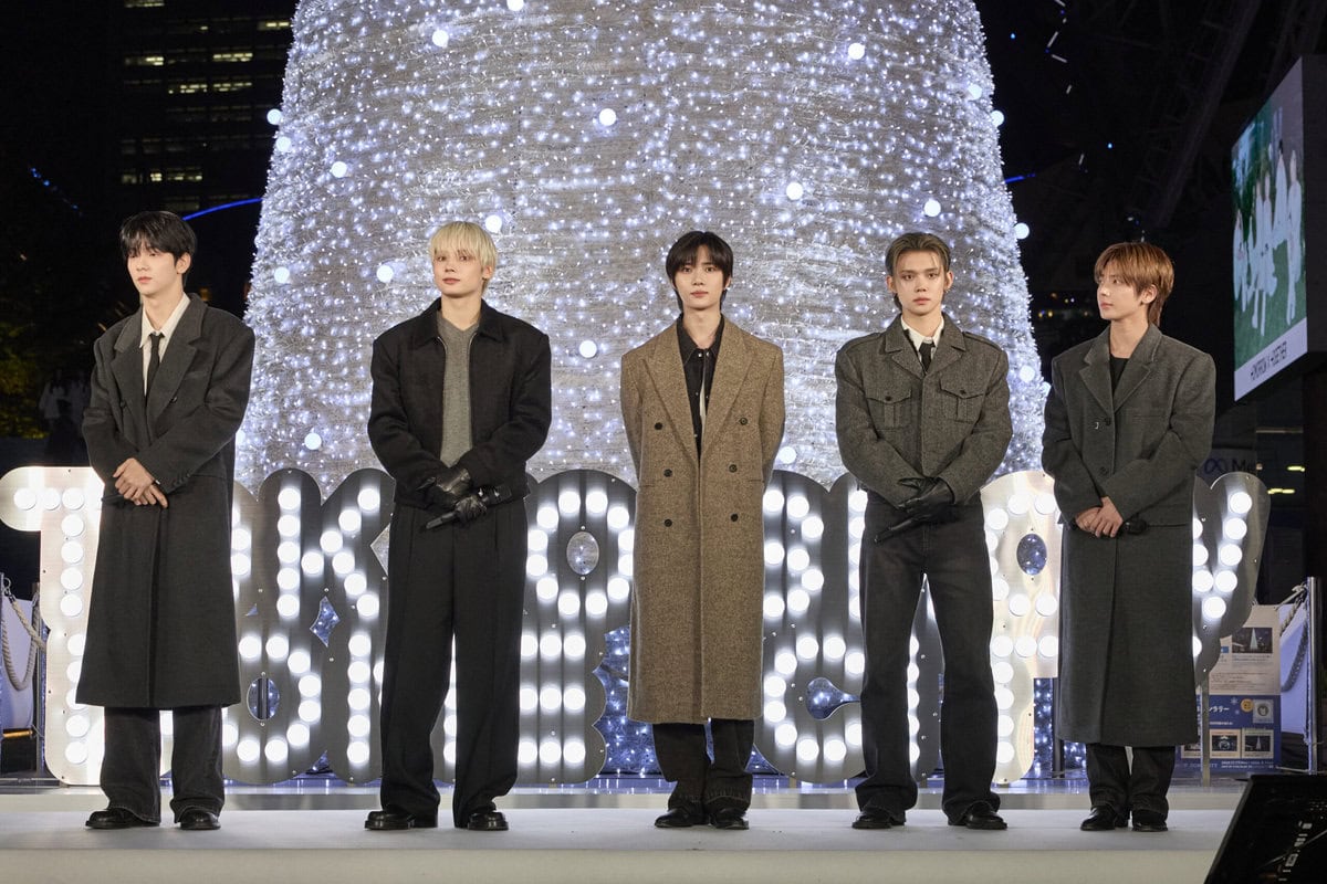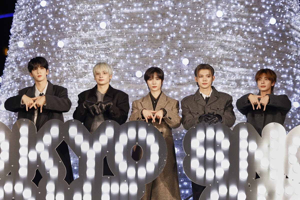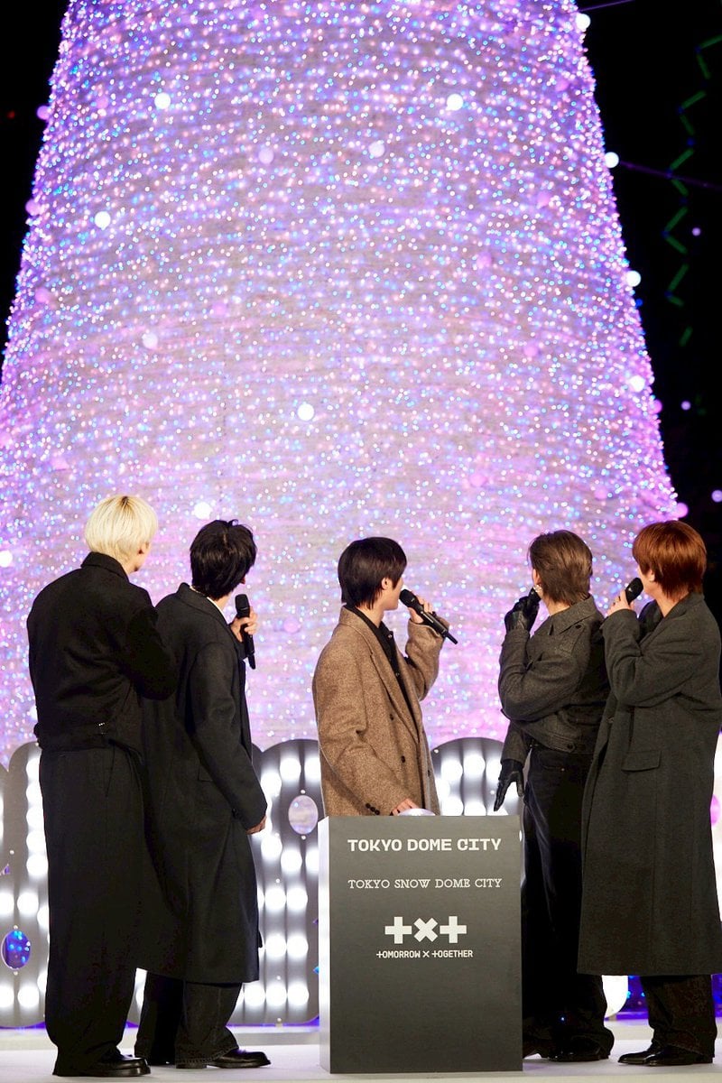 現在4度目となるワールドツアー『TOMORROW X TOGETHER WORLD TOUR <ACT : TOMORROW>』を開催中、2026年1月には2度目の東京ドーム公演が決定したTOMORROW X TOGETHER♡ 東京ドームシティにある高さ約15mの輝くツリー「WONDER SNOW TREE」前にて、イルミネーションの点灯式に登場しました。イルミ×スターの相性は最高すぎる。輝きがまぶしすぎる瞬間をお届けです♡