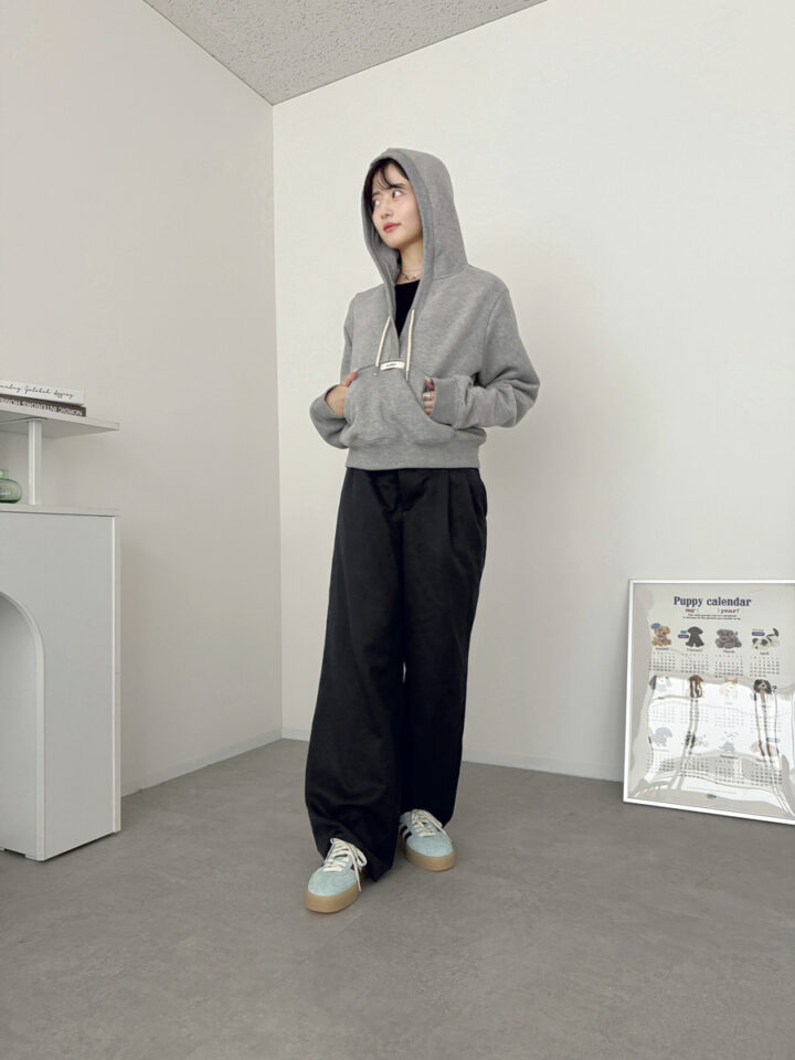 フーディ¥9,771/グロウニー、スニーカー¥13,787/アディダス オリジナルス(ともにBUYMA)、その他/すべて本人私物