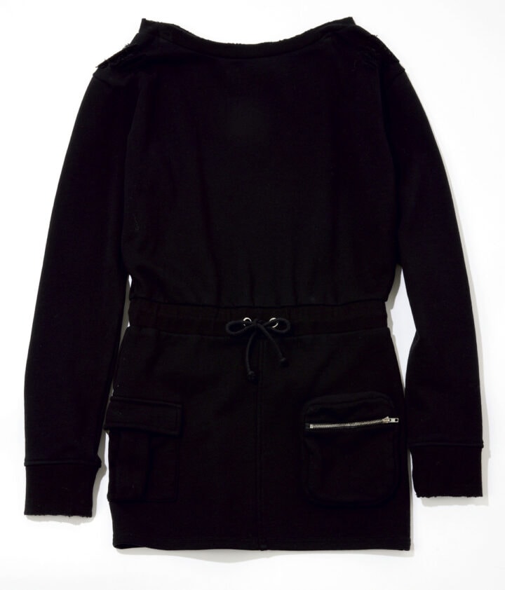 [上から]ボトムはワイドパンツかスカートが2大トレンド! フーディ¥8,690、スカート¥7,920、パンツ¥9,790/以上すべてエモダ(エモダ ルミネエスト新宿店)、ウォッシュ加工でほどよいヴィンテージ感が。フーディ¥6,600、パンツ¥8,800/ともにラグア ジェム(バロックジャパンリミテッド)、オフショルワンピながらスウェット素材でカジュアルライクに。¥12,100/ラグア ジェム(バロックジャパンリミテッド)