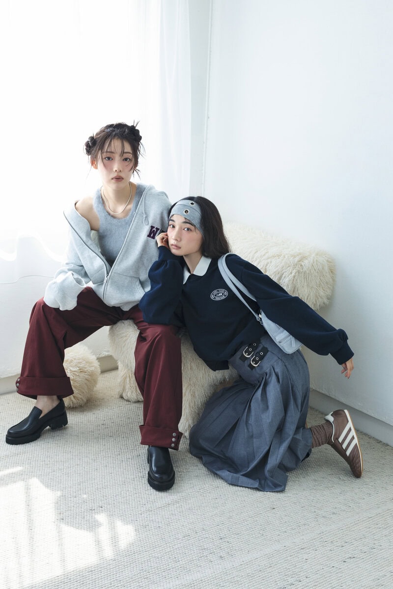 まるでレイヤードしたみたいな、襟付きスウェットが豊富です。ゆるめのスウェットながらほどよくきちんと感が出て♡