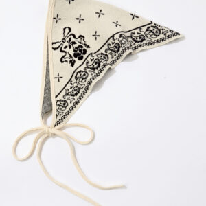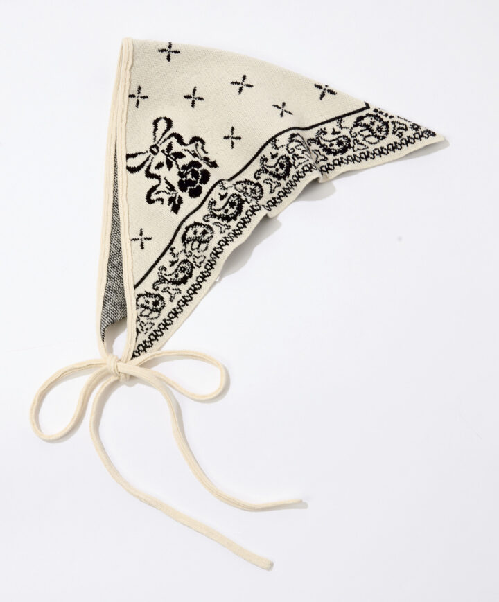 [上から]トレンド感のあるジャガードニットのバンダナは普段のコーデをアップグレード! ¥6,600/スライ(バロックジャパンリミテッド)、大粒のラインストーンとチュールで、品良くエレガントなワンランク上の猫に。¥29,260/カシラ(カシラ プレスルーム)、大きなローズモチーフとニットのふわふわ素材が魅力的♡ ¥6,600/カオリノモリ(オーバーライド ルミネエスト新宿)、シャギーニットに編み込まれたスパンコールがアクセント。紐を結ばず通常のニット帽のようにかぶっても。¥9,350/ガールズソサエティ