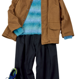 ジャケット¥64,900/グランク(NISHINOYA)、ワイドパンツ¥17,600/リメール(リメール ストア)、ニット帽¥3,520/ニューエラ、スニーカー¥15,950/アディダス オリジナルス(アディダス コールセンター)