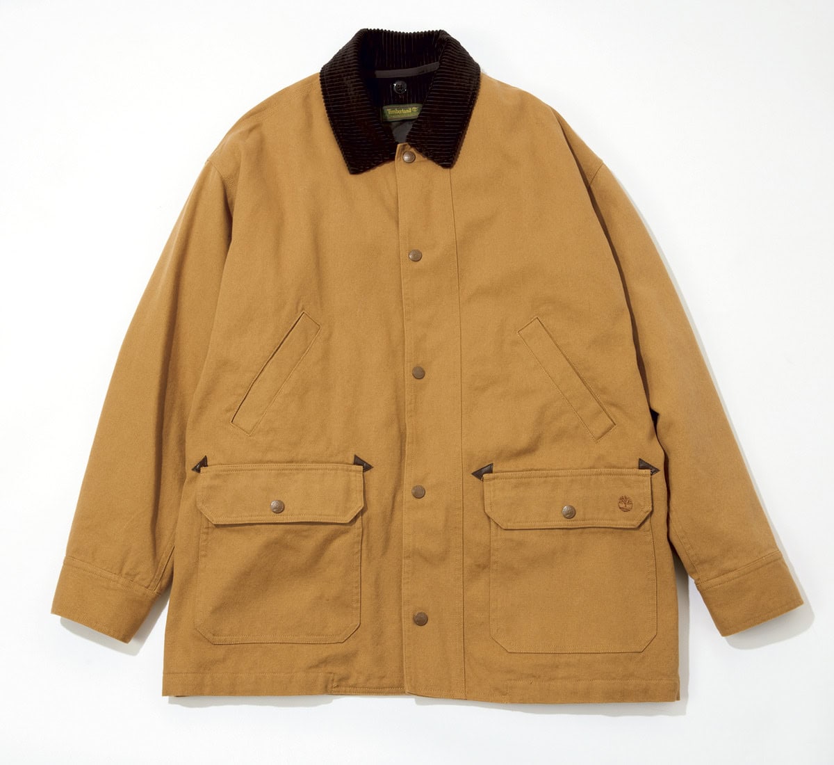 [上から]アーカイブのデザインをアップデートした、コーデュロイ襟がポイント。取り外し可能な中綿仕様。¥57,200/ティンバーランド(VF ジャパン)、抜け感のあるデニムジャケットは、異素材襟でメリハリが。¥23,100/ラングラー(エドウイン・カスタマーサービス)、オールブラックのシックなジャケットは、スクエアラベルがデザイン全体を引き締める。¥47,300/カーハート WIP(カーハート WIP ストア ハラジュク)
