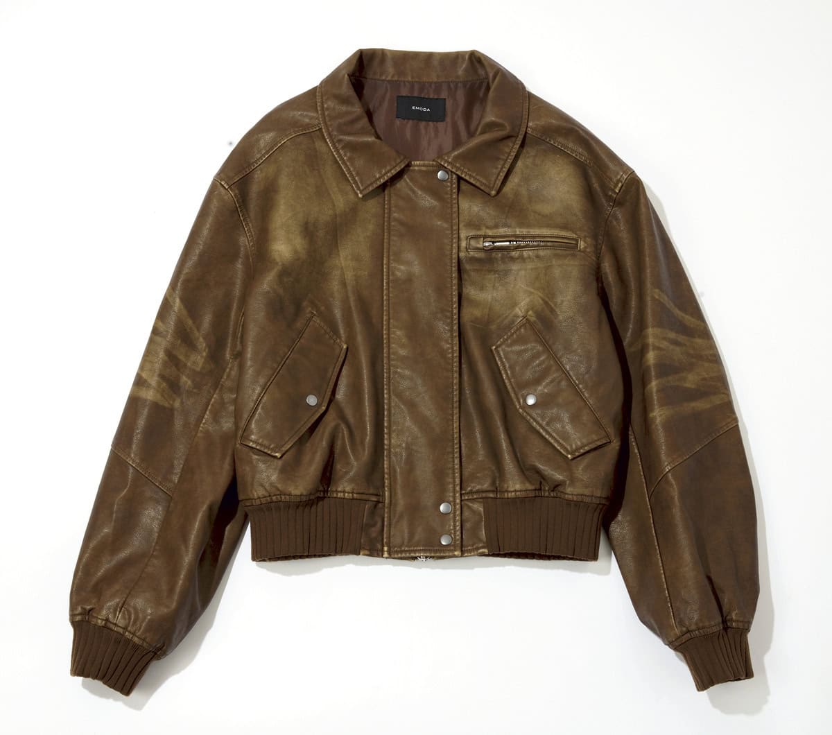[上から]ほんのりツヤ感のある素材はハードすぎず着やすい。ポケットのフリルがアクセントに。¥30,800/ハニーミーハニー、ゆとりのあるシルエットで、ニットや厚手のインナーにも対応。¥61,600/バウム・ウンド・ヘルガーテン(S&T)、イギリス発のフットボールブランド「umbro」とのコラボ。スタンドカラーがシャープな印象。¥19,800/アンブロ×フリークス ストア(フリークス ストア渋谷)、程よい厚みと張り感のあるフェイクレザー素材がヴィンテージライク。¥15,1580/エモダ(エモダ ルミネエスト新宿店)