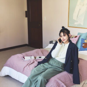 俳優としても活躍中の夏子が、“スウェットパンツ”をガーリーストリートに着まわし!