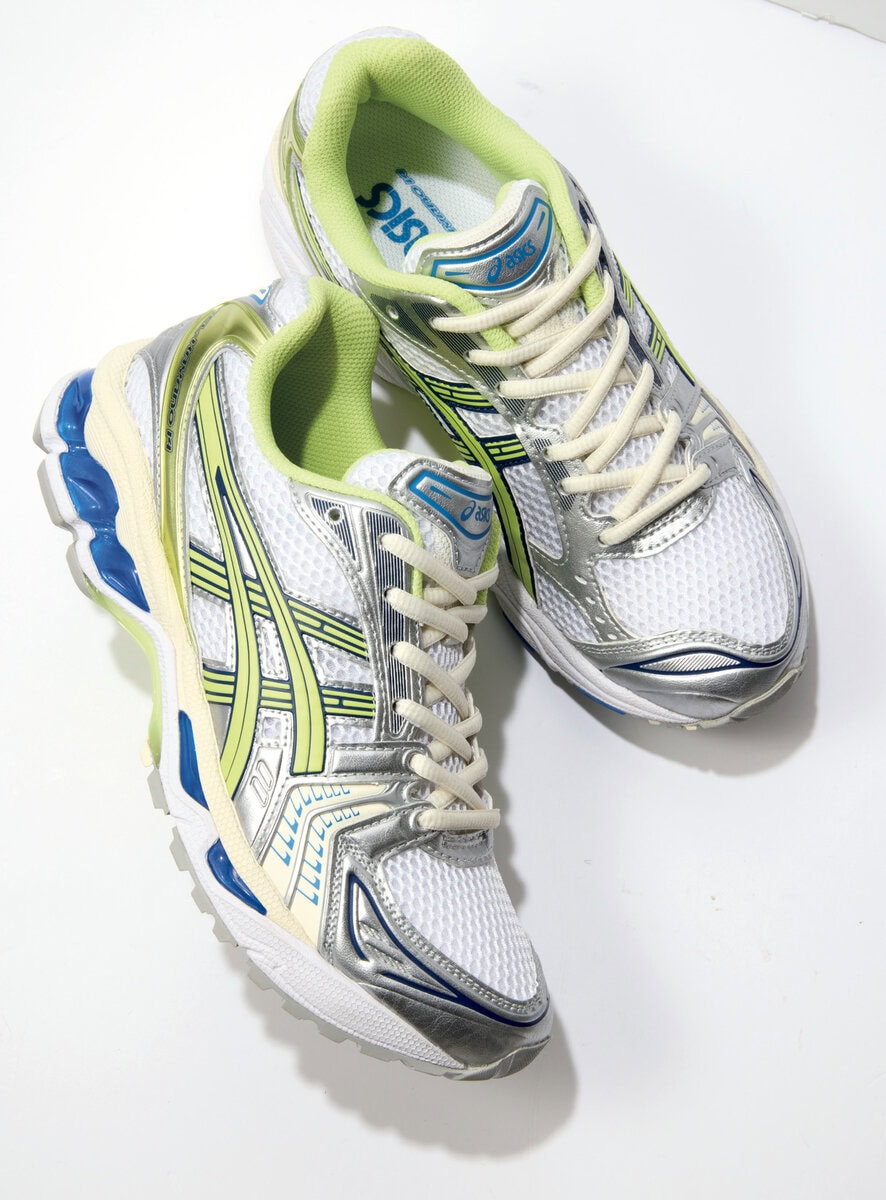 アシックスを象徴する人気のランシューシリーズ。目の粗いメッシュを用い、アシックスストライプスやパーツにはメタリック素材を合わせ、トレンドのスタイリングにマッチするデザインに。各¥19,800/ともにアシックス(アシックスジャパン カスタマーサポート部)