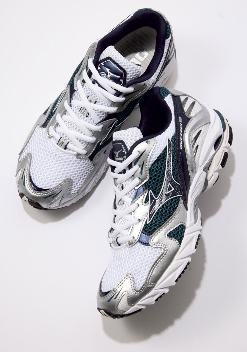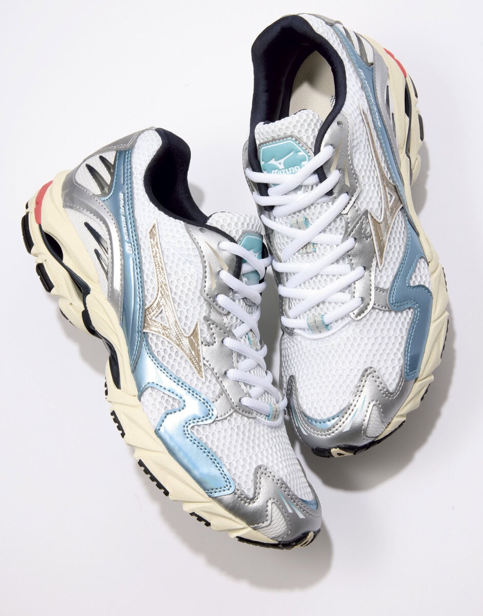 90年代後半~2000年代前半のトレンドからインスピレーションを得た、ミズノの象徴的なモデル。ソールに隙間があってとても軽量! どこまでも歩ける! 〈上〉¥18,700、〈下〉¥18,700/ともにミズノ スポーツスタイル(ミズノお客様相談センター)