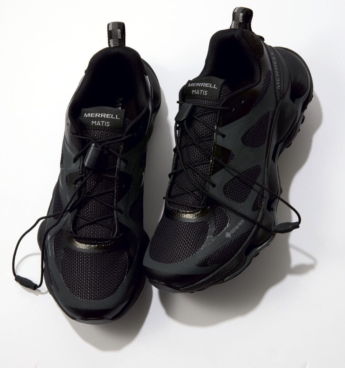 〈上から〉軽くて歩きやすく、足元に重心が来ることでコーデバランスがとりやすい![Eter no4]¥5,390/フィラ(シュープラザ)、ドレッシーな着こなしもほどよくカジュアルダウンさせてくれる。[SPEED ARC MAT IS GORE-TEX®️]¥30,800/メレル(丸紅コンシューマーブランズ)