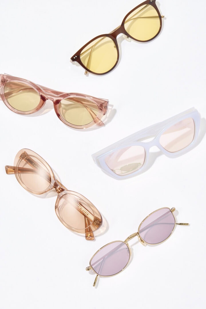 コーディネイトのさし色にもなる、イエローやピンク、ライトブラウンなどのポップなカラーレンズをピックアップ!