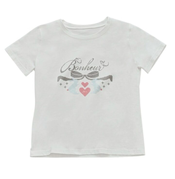 ハートやリボン、うさぎなど可愛いモチーフがぎゅっと詰まった心ときめくデザイン。コンパクトなシルエットと程よい丈感で、デニムやミニスカートなど様々なボトムと合わせやすい一着。¥4,180/バースデールーム(アンティローザ)