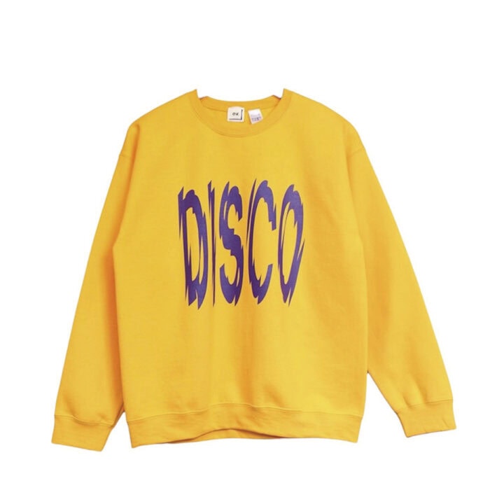 (上から)大人の余裕を感じるビッグDISCOロゴ。色合いも騒がしくて◎! ¥7,920、音楽がないと生きていけないですからね、掲げましょう。¥7,920/ともにオーケー(アドナスト)、ストリート感のあるルーズなシルエット。ライトアウターとしても。¥4,399/ウィゴー