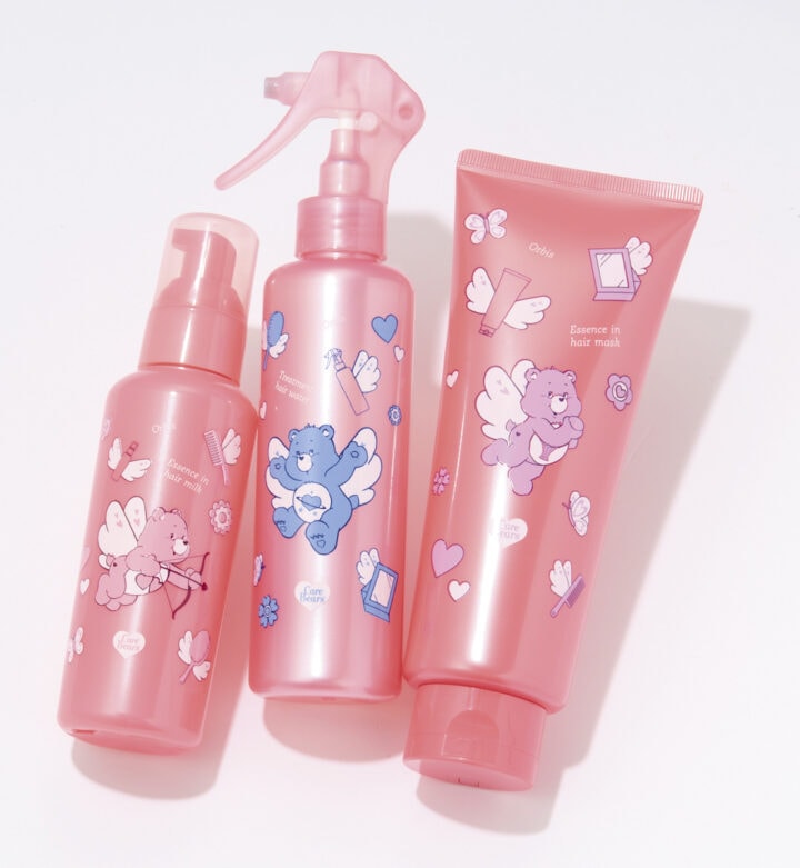 「まとまり髪に導くSNSでも話題のヘアケアアイテムが“ケアベア™”デザインに♡ 毎日のケアが楽しみ」 〈右から〉エッセンスイン ヘアマスク 限定デザイン 200g ¥1,540、トリートメント ヘアウォーター 限定デザイン 180mL ¥1,100、エッセンスイン ヘアミルク 限定デザイン 140g ¥1,320/オルビス(0120-010-010)TM & ©2026 TCFC