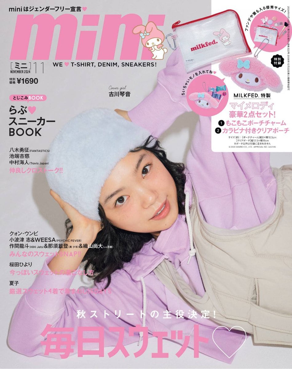 数々の話題作に出演、今気になる俳優No.1!の古川琴音さんが、mini初登場にして初表紙に♡ こちらが何も言わなくても瞬時に服を理解し、カメラ前に立ってふわふわと動く姿が素敵すぎて、スタッフ一同心の中でスタンディングオベーション!!インタビューは、どこかベールに包まれた琴音ちゃんに迫る初表紙恒例企画の100問100答を実施。ここではファッション編をお届けします。