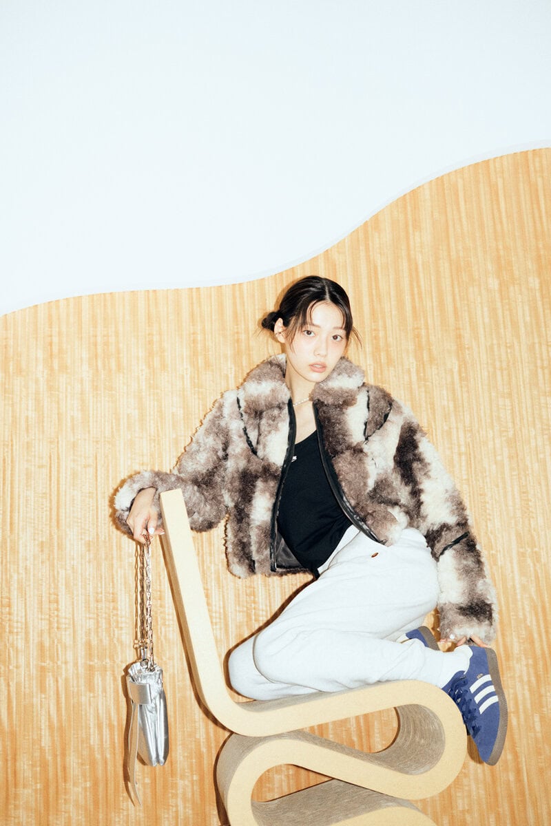 しっかりカールしたファーで甘さを効かせつつも、深みのあるニュアンスカラーで高級感もたっぷり。だぼっとスウェパンやスニーカーでストリートな抜け感をプラスして。