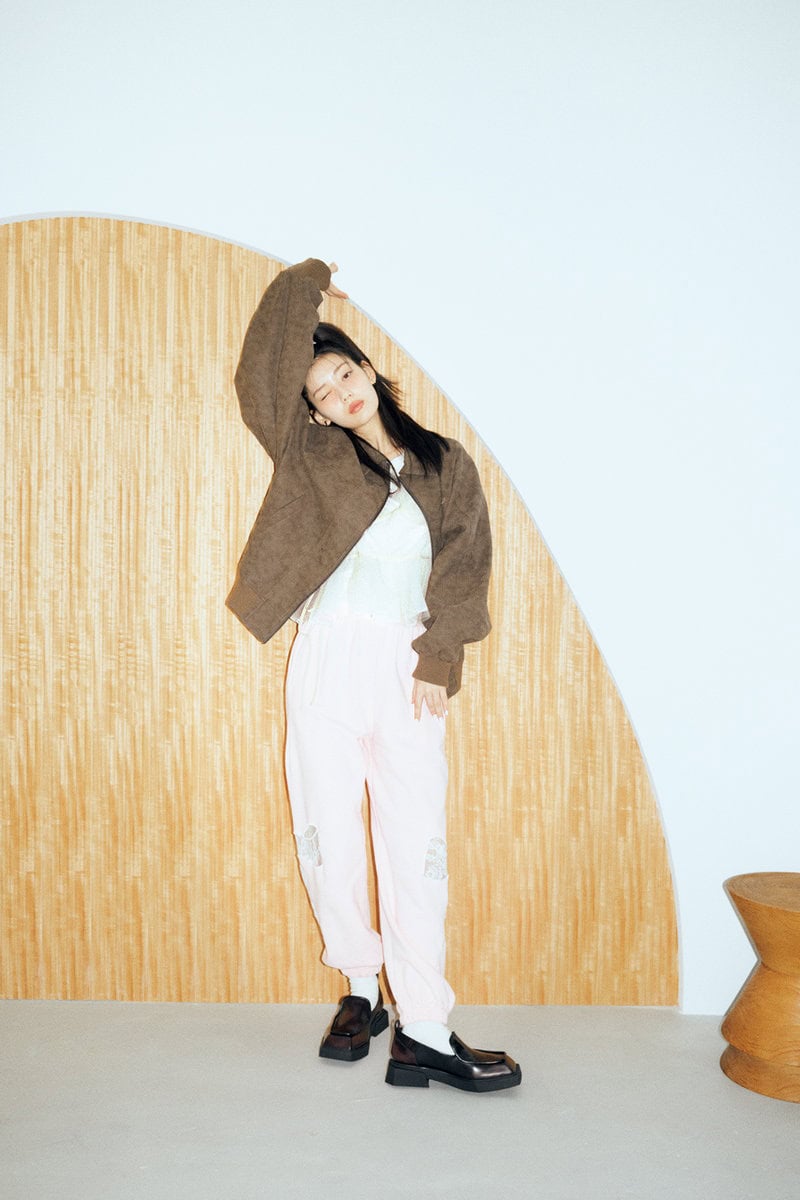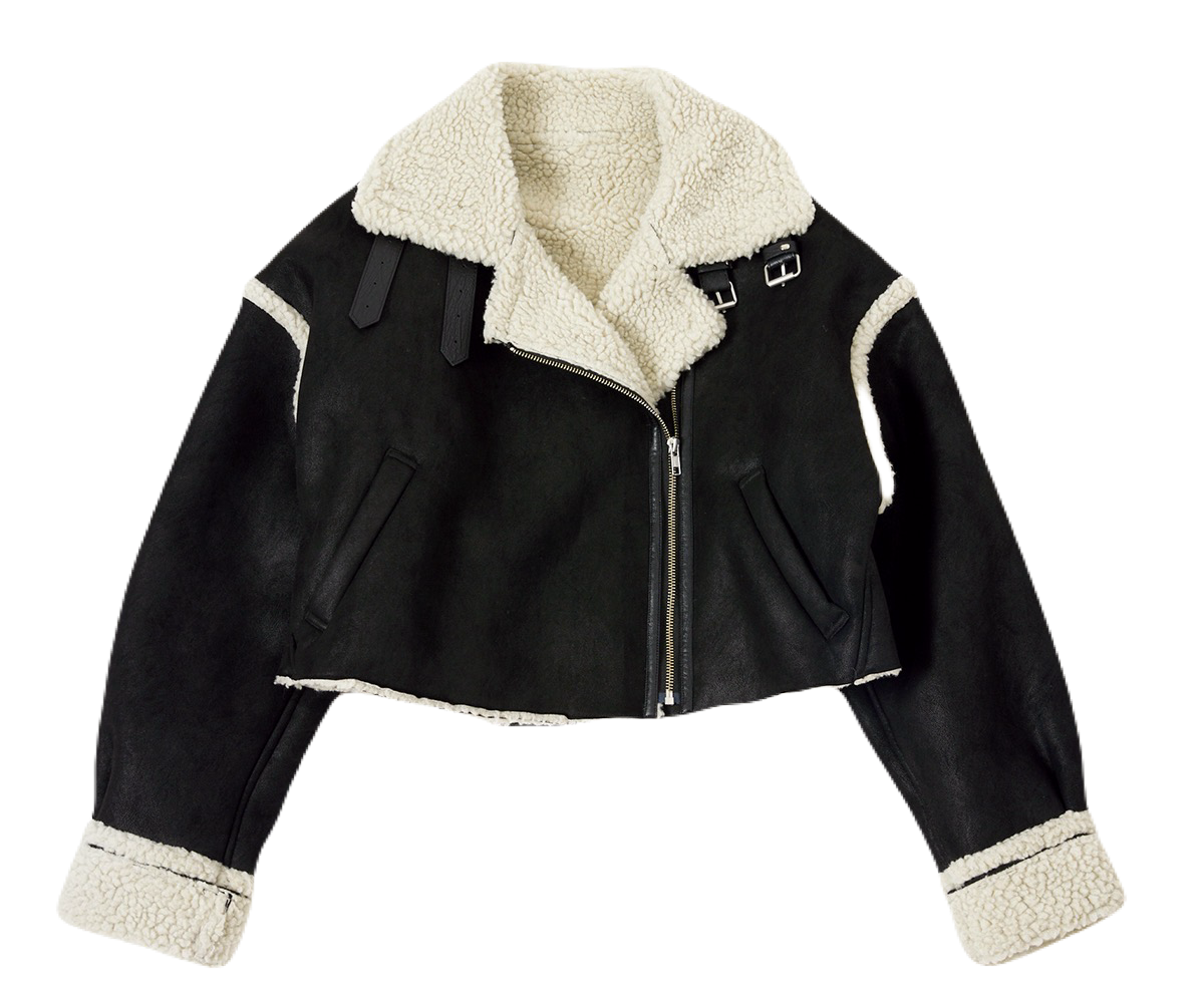 (上から)蕾のようなフォルムのボリュームスリーブとピスタチオカラーが個性的。¥14,900/Olu.、コンパクトなシルエットのライダース。裏地のショッキングピンクをチラ見せさせたい♡ ¥17,600/ジュエティ