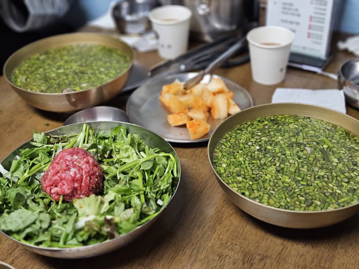 ミナリは日本でいうセリのこと。今一番ホットスポットと言われる聖水(ソンス)にあり、ゴハンどきには行列ができる人気店ですが、意外と回転は早いです。朝10時オープン。