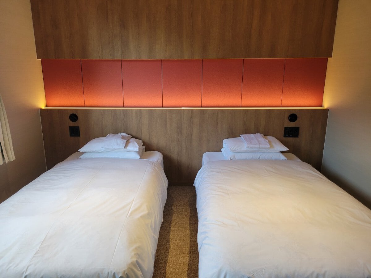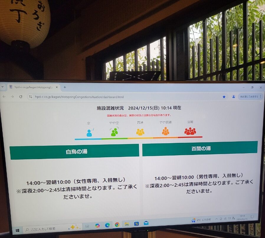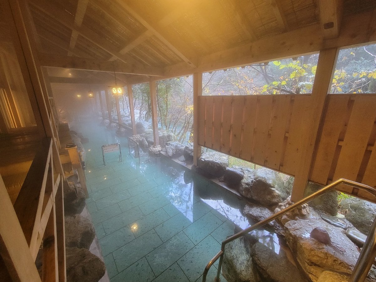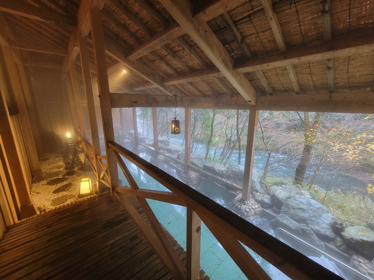 窓から景色を眺めながら、乗務員さんが山間や通りかかるお店の解説をしてくれるのを聞いていると、あっという間に宿に到着。