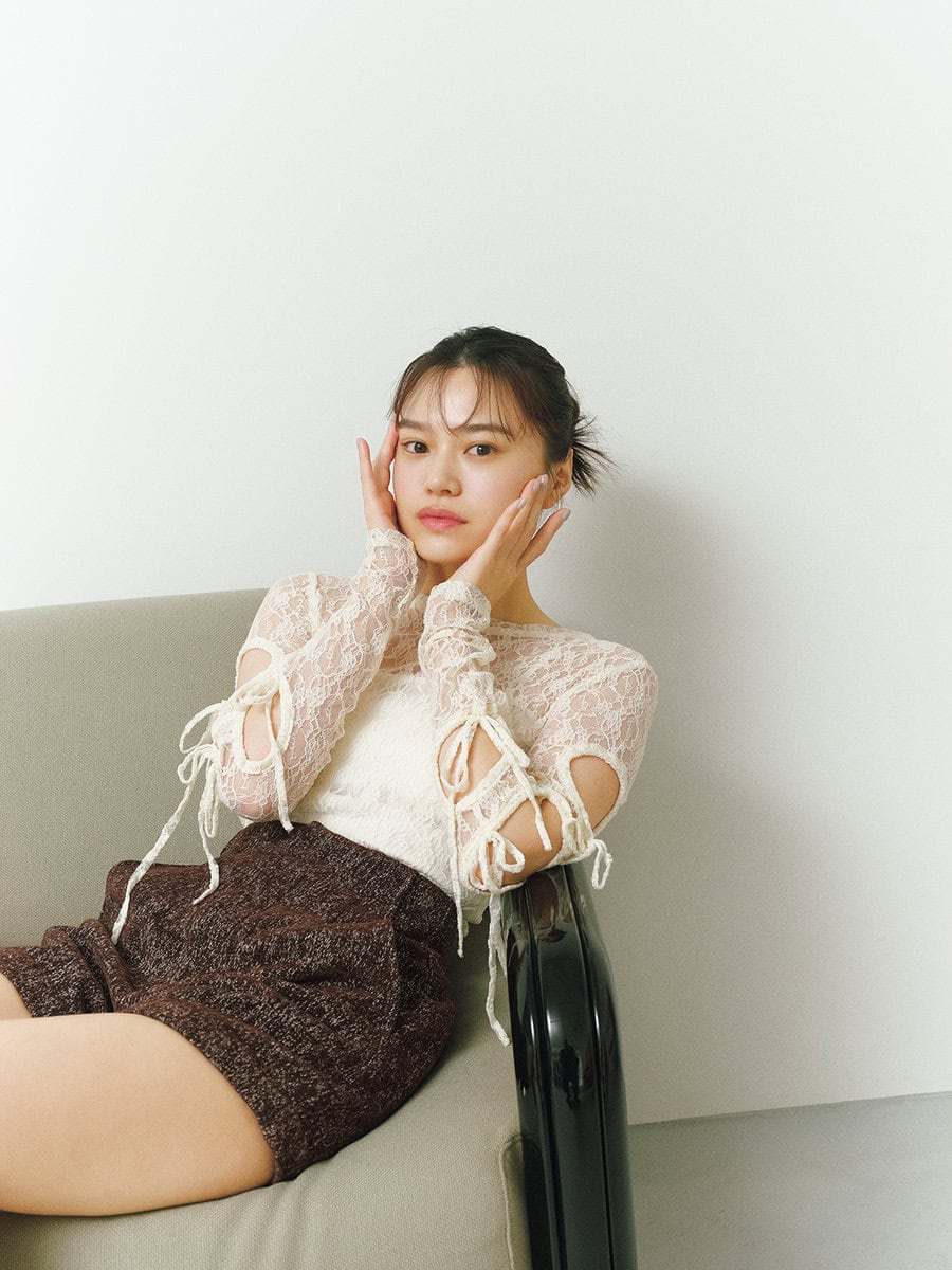 レーストップス¥4,950/ラグア ジェム、ツイードショートパンツ¥10,450/マウジー(ともにバロックジャパンリミテッド)