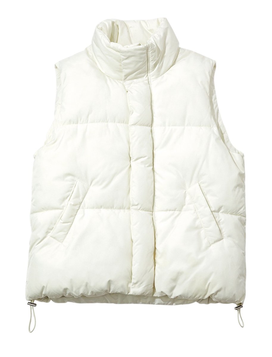 シロクマのようなボアジャケットに埋もれたら可愛い街道まっしぐら♡ ワントーンで軽やかにまとめつつ、Tシャツロゴがアクセント。上下に配置した黒小物で、全体を引き締め。