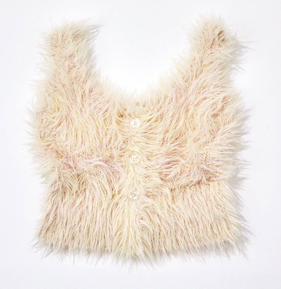 毛足長めシャギーが華やか! オフホワイトで、きれいめにもカジュアルにも使いやすい。¥1,799/GRL