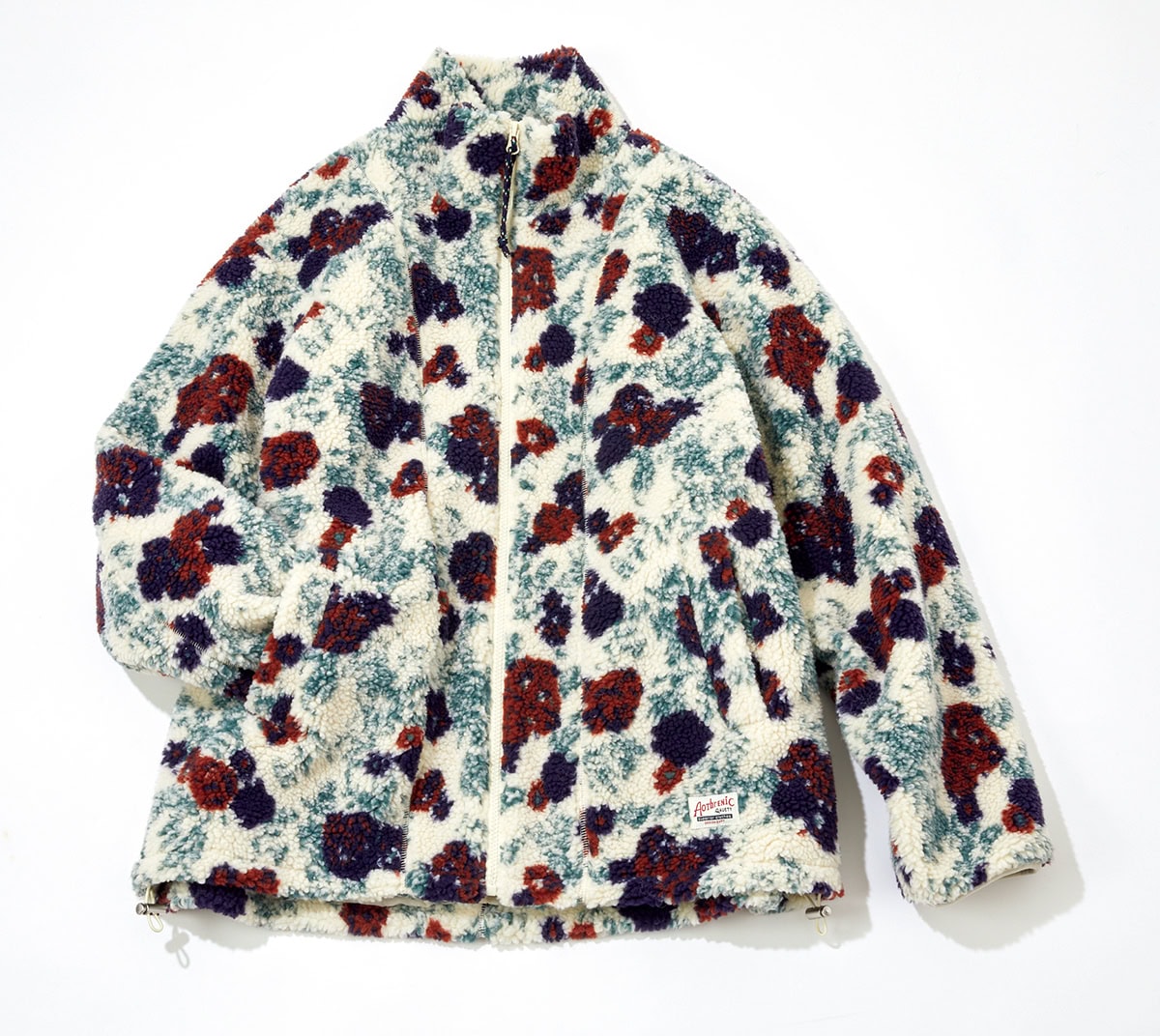 シンプルなボトムにもふっとはおるだけでキマる、花柄フリースジャケット。¥6,589/スピンズ