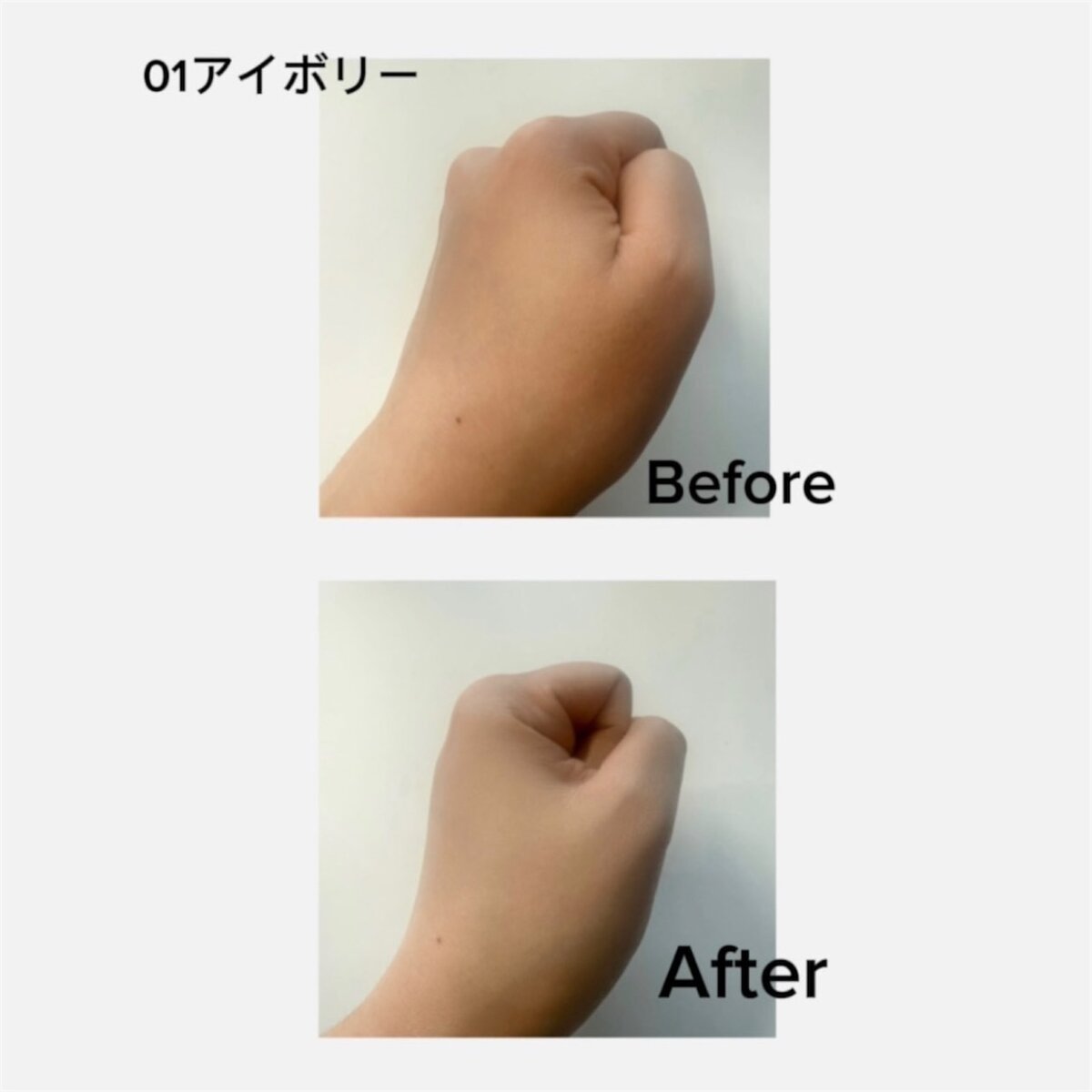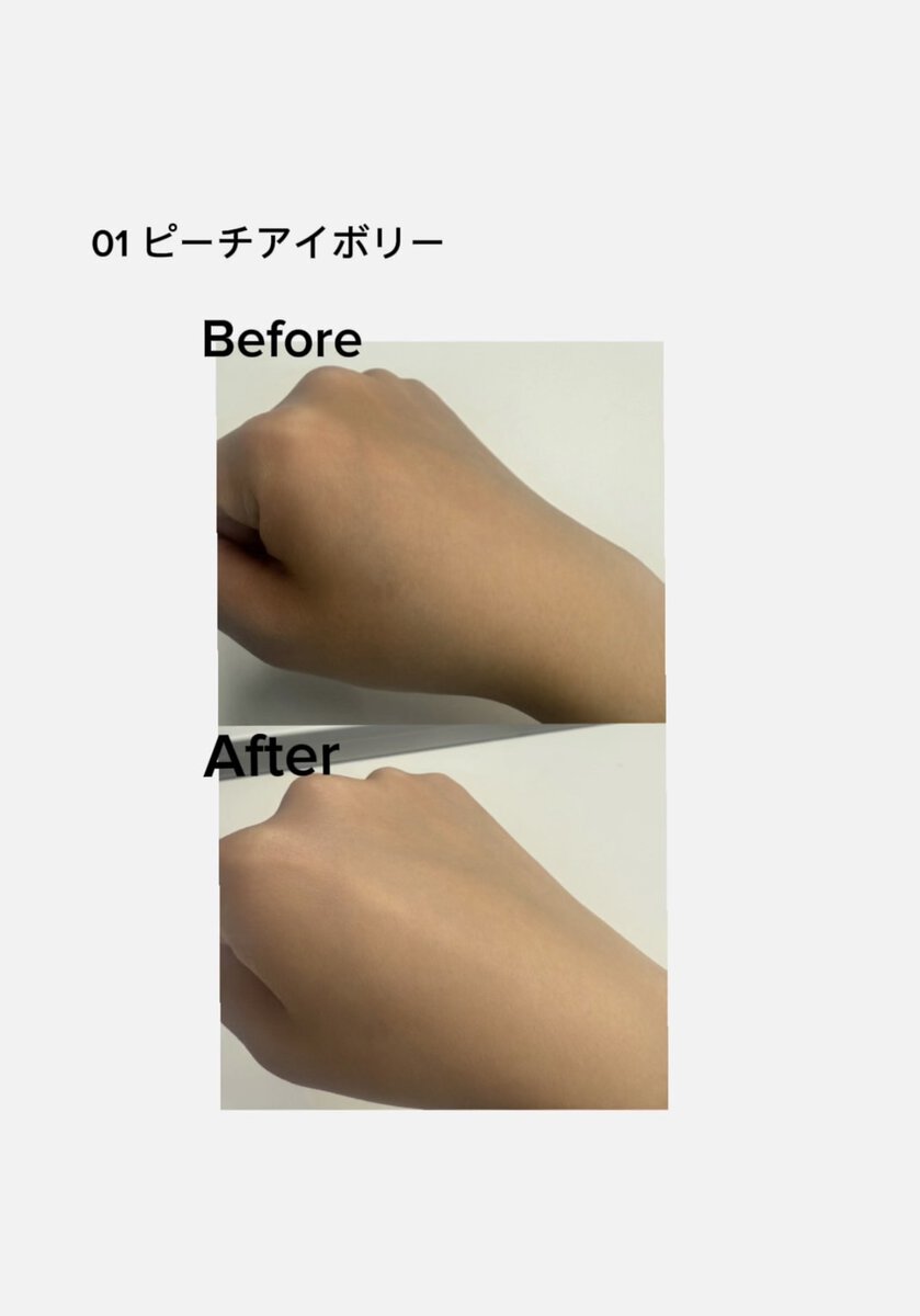 ピーチアイボリーは血色感、ソフトラベンダーは透明感がプラスされるように感じました。テクスチャーは、とてもなめらかで軽い! 乾燥もしにくかったです。