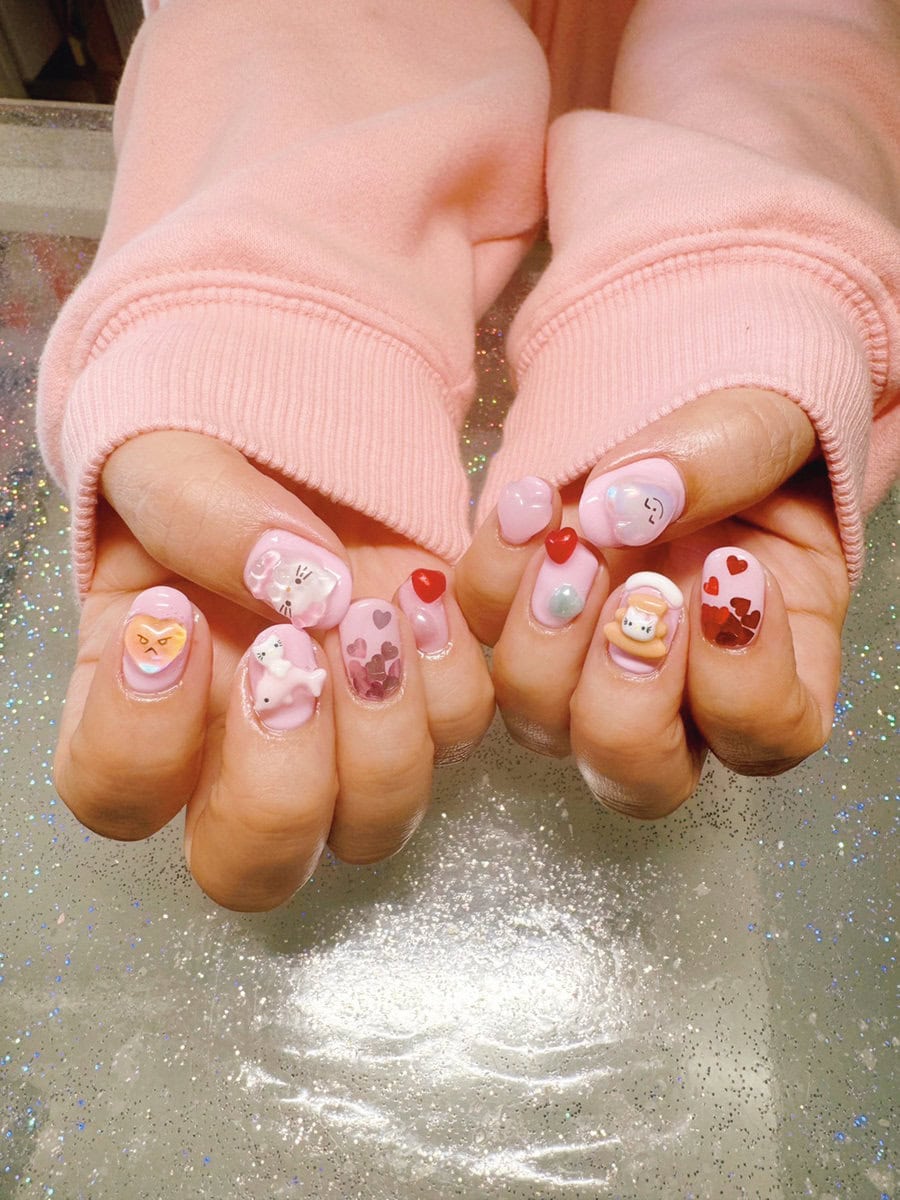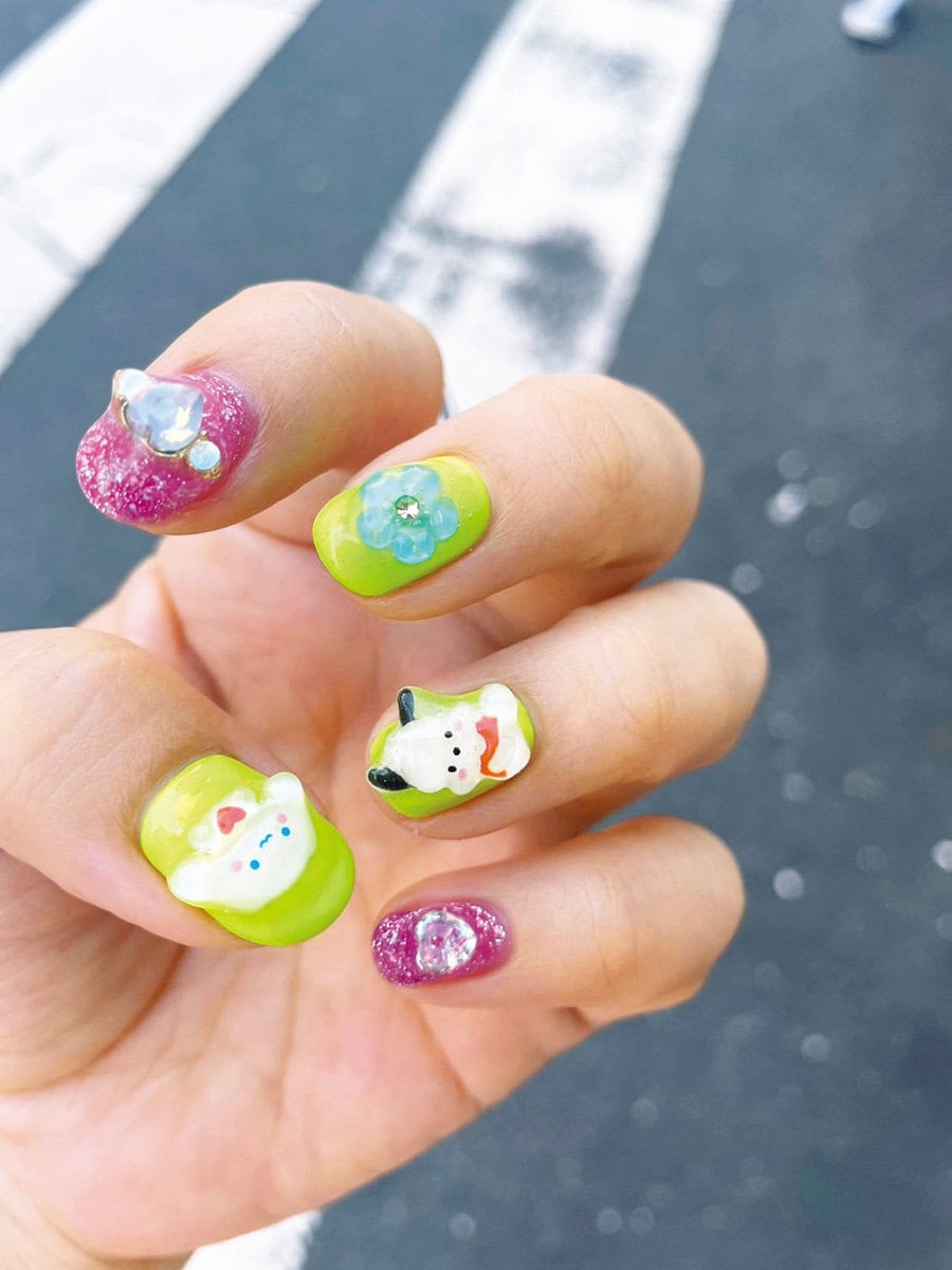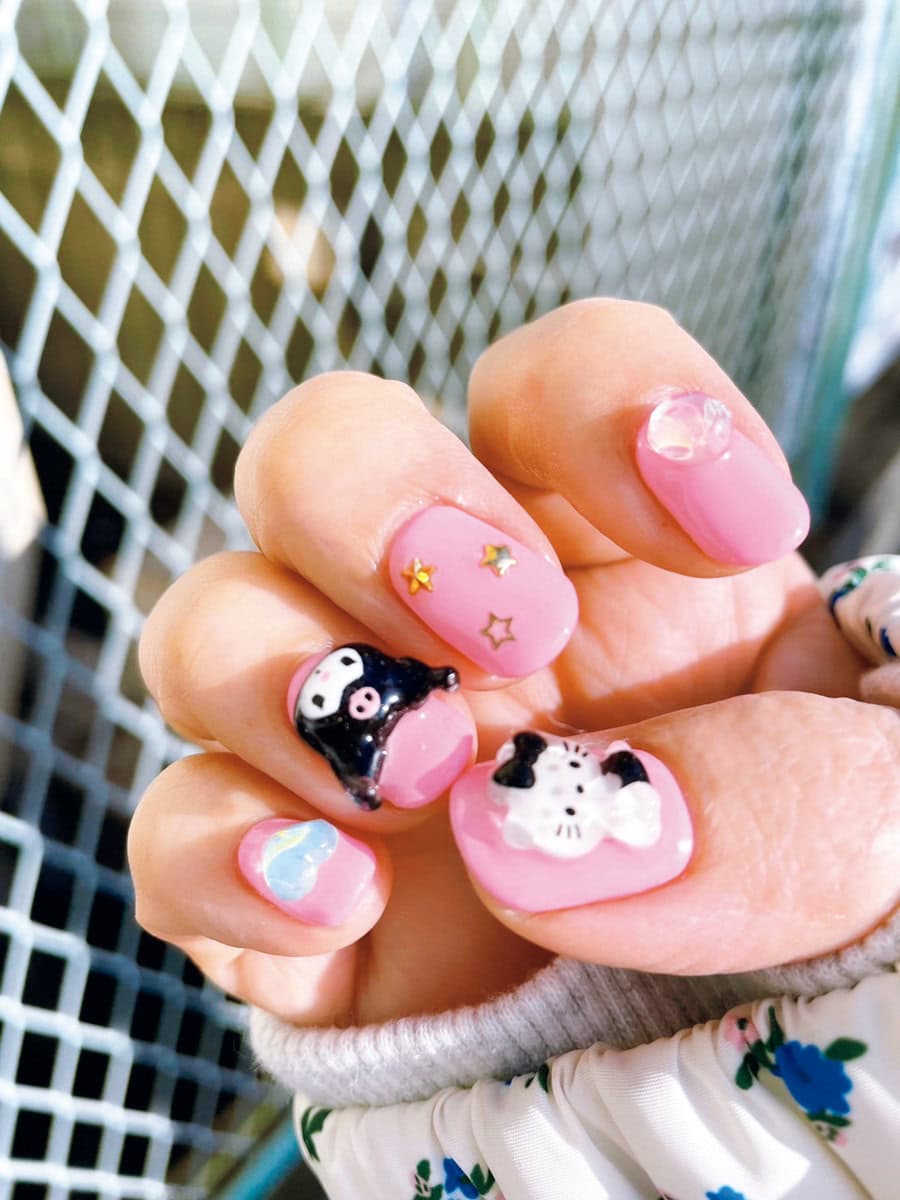 「コロナ禍に、少しでも暗い気持ちを上げられたらと軽い気持ちで始めてみたらドハマり。電車で二度見されたり、キャラが渋滞しすぎて爪が重い気すらする日もあるけど、日常生活に支障なし。最近は主にKぽとサンリオの2本柱でやらせてもらってます。HAPPY♡」by 編集K