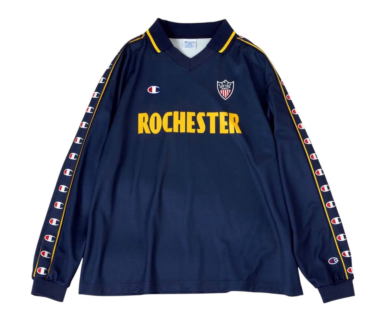 【上から】着まわし力抜群なネイビー。スリーブに並んだチャンピオンロゴが目立ちます♡ ¥10,780/チャンピオン(ヘインズブランズ ジャパン カスタマーセンター)、シャカシャカ素材のブルゾンは、これからのはおりとして優秀。¥13,970/ビターセルズ(ハナ)、ナンバーロゴが特徴的な一着。[ショートパンツとセット売り]¥35,200(77サーカ)、ブルーのラインが効いたメッシュショーパンでヘルシーに脚見せ! ¥11,110/ジョーダン ブランド(アトモス ピンク フラッグシップ 原宿店)