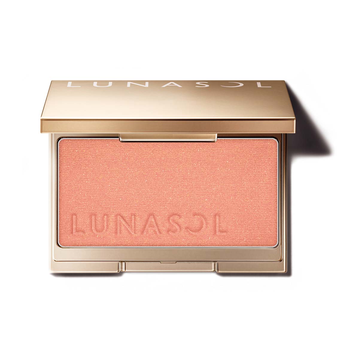 ゴールドパール入りコーラルピンク。ルナソル カラーリングシアーチークス(グロウ)EX13 ¥3,850(セット価格)/カネボウ化粧品[限定品]