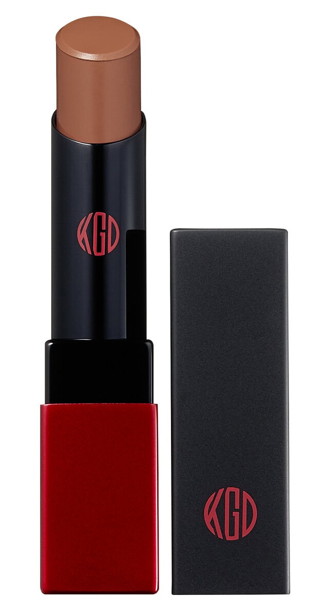 肌映えするタンジェリンオレンジリップ。スティックルージュ グロッシー カラーバーム 04 ¥3,300/Koh Gen Do