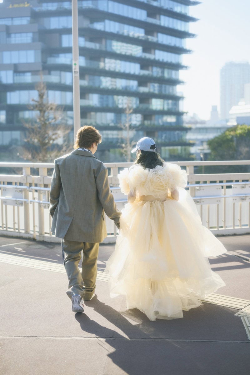 すでに発表があったとおり、古川優香ちゃん&サグワくんが結婚しました♡♡ miniではふたりの“やることリスト”のひとつでもあったというウェディングフォト撮影をお手伝い。スペシャルなのにラフでストリート。“ウェディングだってスニーカー!”がmini流です!