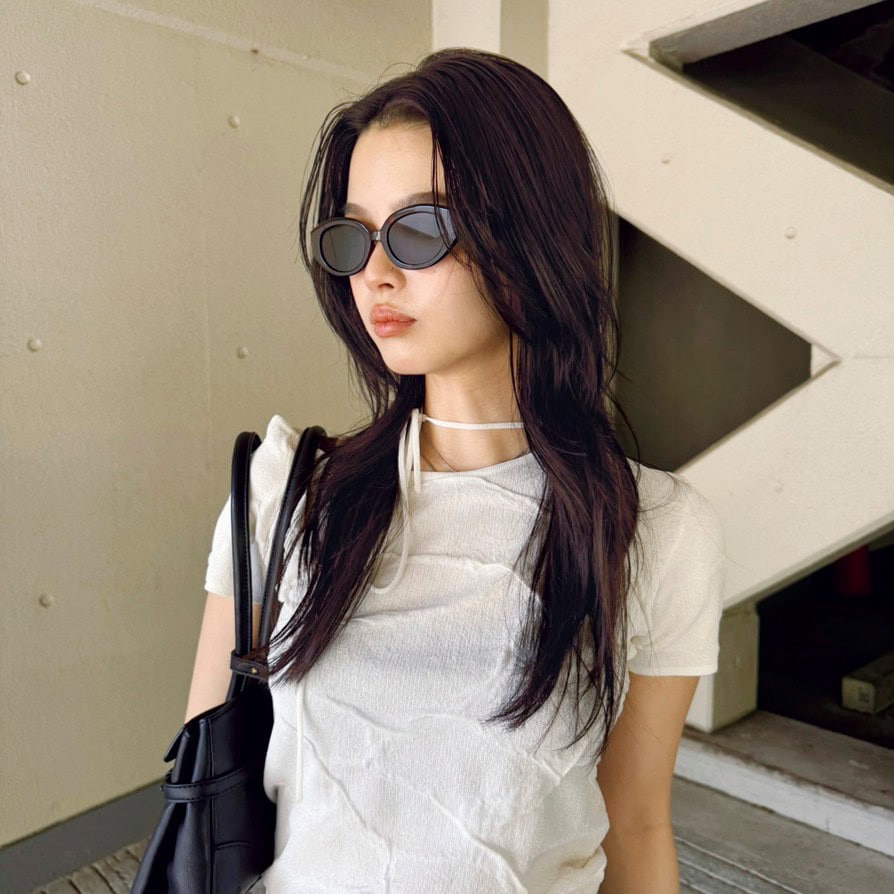 サングラス派に人気なのが、オーバル型レンズの太ぶちサングラス。丸みがあるから顔周りを優しく柔らかく見せてくれる効果も♡
