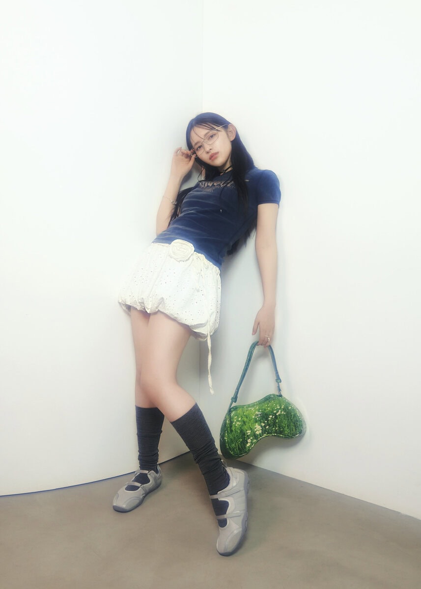 「最近は今回着たみたいなバルーンスカートにハマっていてよくはいているんですけど、ニット素材のカットソーとかロングブーツを合わせがちなので、夏はTシャツと合わせてみたいなと思いました。甘いバルーンスカートにカジュアルなスニーカーを合わせるっていうのも、ギャップが生まれて可愛いですよね」
