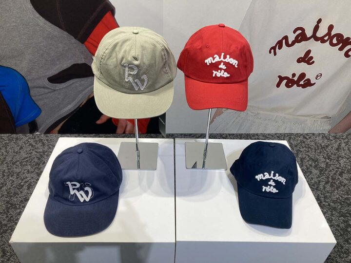 向かって右がロラロラのキャップ。向かって左はPARTIMENTO WOMEN(パルティメント ウィメン)のもの。この秋冬、ロゴキャップはマストバイかも。