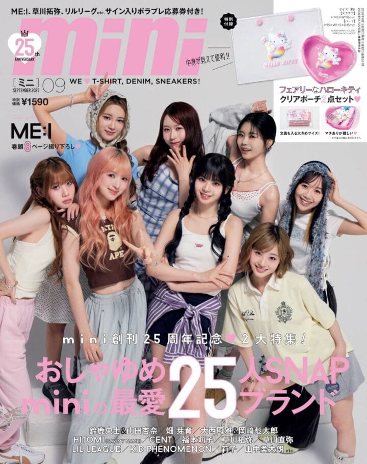 JO1やINIなど名だたる人気グループを輩出、通称「プデュ」と呼ばれる大人気番組で選ばれ昨年デビューした、11人組ガールズグループ「ME:I」が、mini25周年という記念すべき今号で初表紙!
